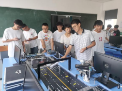 在交通管理与控制实验室。葛鹏向同学们介绍了该实验室的信号交叉口模型、智能物联网实验箱及配套软件。同学们兴趣十分浓厚,不满足于静态展示,于是由老师现场开机演示,满足大家好奇心同时进一步激发了同学们对专业课的兴趣。
