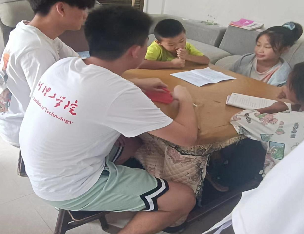 图为队员给留守儿童宣教+辅导功课