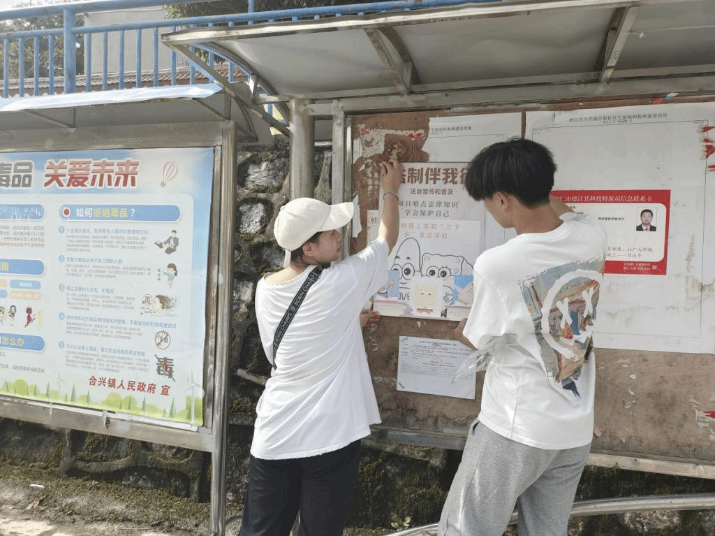 通过走访,队员发现当地居民大多法律意识淡薄,队员们针对老人儿童人群重点下功夫做工作,通过一周的努力,走访40近家村民,发放宣传教育资料100余份,张贴海报20余张,队员们深入德江县合朋村进行法治宣传,告诫村民“天上不会掉馅饼”的道理,谨防各种诈骗行为,更强调空巢老人和留守儿童尤其要提高法律意识,尽可能学法用法以保护自己。