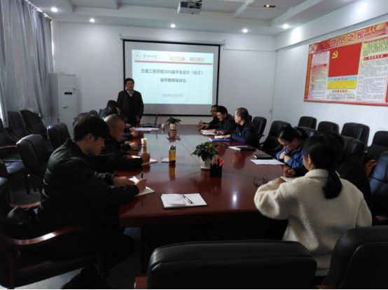 (本网讯 交通工程学院 甘新立)为确保学院2020届毕业设计(论文)工作顺利开展,2019年12月17日,交通工程学院组织召开2020届毕业设计(论文)指导教师培训会,学院参与毕业设计(论文)的教师参加了此次会议。