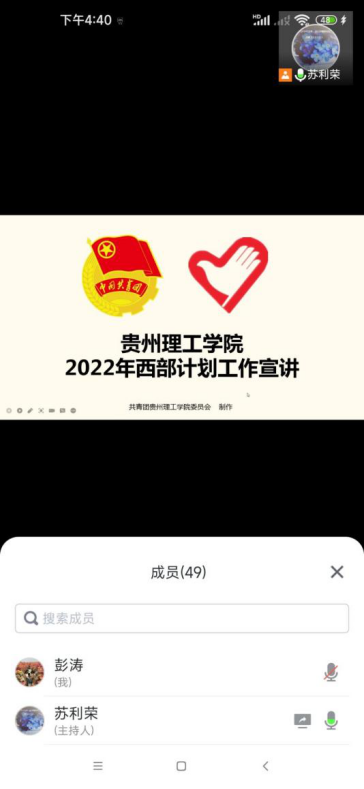 本网讯(交通工程学院 图/文 苏利荣 为鼓励毕业生扎根西部,去祖国最需要的地方工作,服务人民,2022年5月6日下午,交通工程学院团总支书记苏利荣面向2022毕业生进行西部计划线上专题宣讲。
