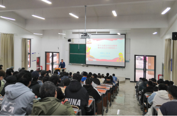 (本网讯 交通工程学院 唐翠)为深入学习贯彻党的十九届五中全会精神,引导广大青年学生全面理解新发展阶段、新发展理念,把个人价值实现融入全面建设社会主义现代化国家新征程的大局之中,充分发挥生力军和突击队作用,2020年12月7日下午,交通工程学院副院长黄政为2020级新同学开展了“学十九届五中全会精神,做社会主义可靠接班人”的宣讲会。