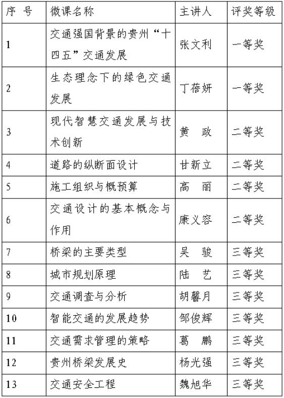 本次竞赛我院共有25名任课教师参加,教师采用现代教育技术手段及设备,自选讲授课程的相关内容,录制10-15分钟能突出体现交通课程思政元素的微课视频,切实将思政教育融入课程教育教学中,发挥专业教育与思政教育的协同育人作用。通过评审,竞赛评出一等奖2名、二等奖4名、三等奖7名。