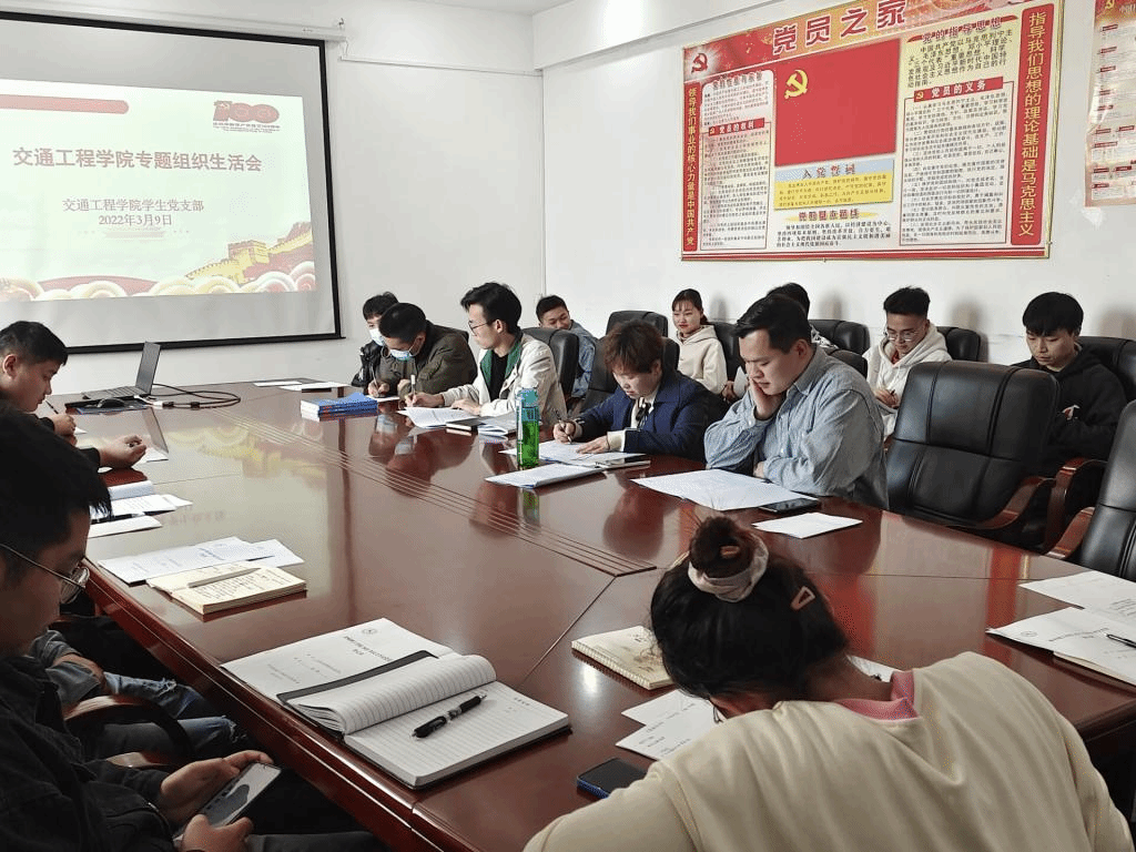 (本网讯杨昌鹏/文 廖富恒/图)为进一步提升支部凝聚力,明确未来努力方向,2022年3月9日交通工程学院学生党支部组织全体学生党员在学院会议室召开2021年度组织生活会和民主评议党员活动。组织生活会由党支部书记苏利荣同志主持,支委及全体学生党员参加。