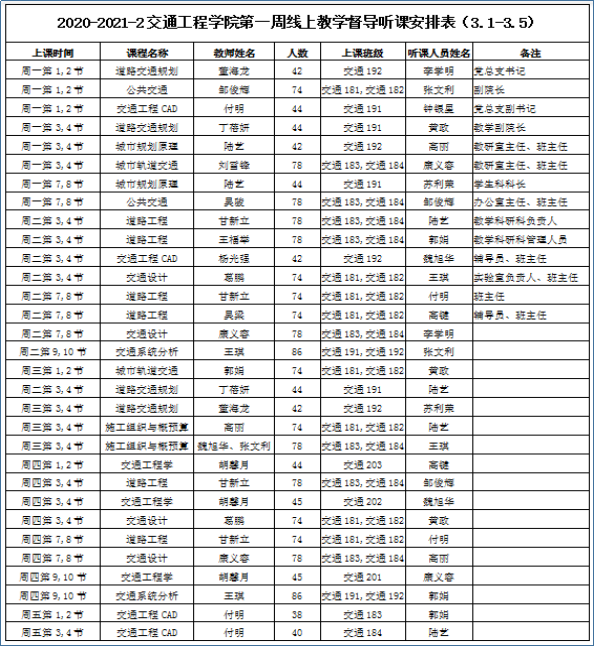 2020-2021-2交通工程学院第一周线上教学督导听课安排表