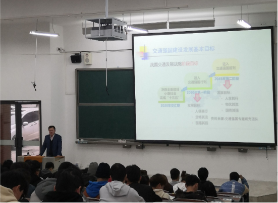 最后,黄院长还向同学们介绍交通强国建设发展主要任务是基础设施优化、服务水平提升、装备设施现代化、交通安全强化、绿色交通主导、城市交通发展、乡村交通改善、全球开放共享以及智能交通引领,未来交通方式将变“人便其行”为“人享其行”的发展目标。