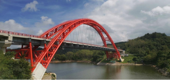 随后一行人赶赴清镇市花鱼洞大桥,现场了解“GNSS地表位移监测设备”健康监测系统在拆除重建的花鱼洞大桥上的实际应用情况。新建的花鱼洞大桥采用全国首创“边拆边建”技术,是贵州首座“提篮”式公路桥梁,橙色的钢管拱跨越红枫湖,如同一道美丽的彩虹,与毗邻的红枫湖大桥遥相呼应,是红枫湖上一道靓丽的公路风景线,该桥总造价11000万元,更让我们骄傲的是这座雄伟、美丽的大桥是由交通工程学院吴骏老师负责设计完成的,桥梁于6月29日竣工通车,为保证桥梁安全运行,桥梁采用视频、健康监测系统,设计了以动态挠度监测为主,抓拍联动技术与自动化健康监测技术相结合的监测方案。测项主要包括主梁挠度、超载抓拍,同时辅助监测体外预应力、应力应变、结构温度、环境温湿度等。通过24小时平台数据监测随时观测桥梁运行情况。
