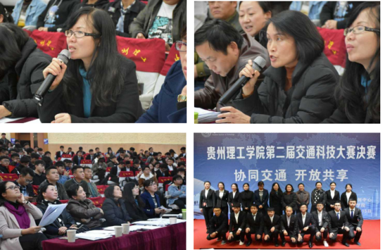本网讯(交通工程学院 冷贵林)2018年11月15日晚19点,贵州理工学院第二届交通科技大赛决赛在逸夫小报告厅隆重举行。出席本次决赛答辩的专家评委有贵州大学土木工程学院方琴教授、贵州省省交职院分院院长汪迎红教授、上海千年城市规划设计有限公司娄锋研究员、交通工程学院副院长张文利、陈筠。院党总支书记李学明、全体教师及380名学生进行观赛。