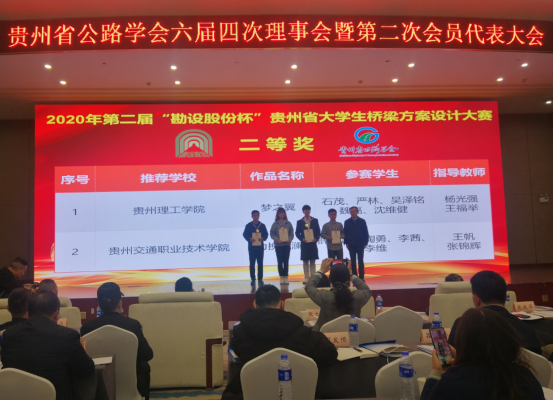 (本网讯 交通工程学院 图/文 邹俊辉)2021年3月26日下午,2020年第二届“勘设股份杯”贵州省大学生桥梁方案设计大赛颁奖典礼在贵阳盘江诺富特酒店会议中心3楼3001会议室隆重举行。