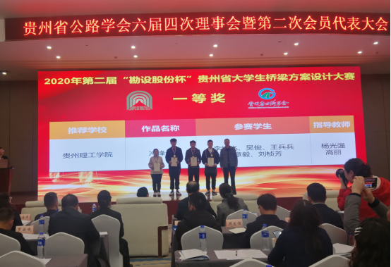 最后,交通工程学院杨光强、王福举、高丽三位老师荣获优秀指导老师奖,由贵州省公路建设养护集团有限公司总工程师熊延华为获奖老师颁发了奖状。
