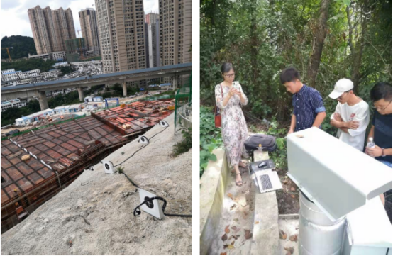 一行人还前往恒大帝景建设工地,考察调研了“GNSS地表位移监测设备”在监测护坡表面位移、工作原理、数据存储机制、误差扰动消除等方面的情况。