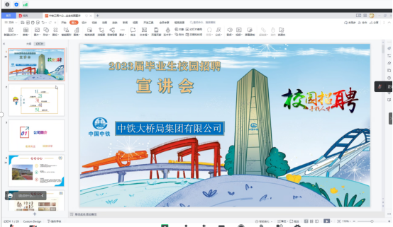 本网讯(交通工程学院 图/文 余何彪)为了更好得解决大学毕业生就业难问题,缓解当今大学毕业生就业压力,11月3日15点,学院通过腾讯会议举办了中铁大桥局集团有限公司交通工程学院2023届毕业生线上专场招聘会。