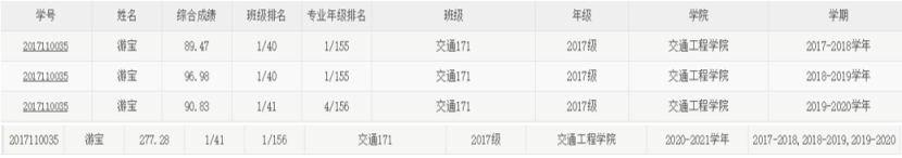 个人荣誉:三年奖学金