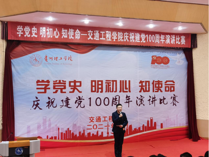 (本网讯 交通工程学院 图/余何彪 文/杨涛)为有效推动党史学习教育和“牢记殷切嘱托、忠诚干净担当、喜迎建党百年”专题教育活动,号召青年学生铭记革命历史,将党史精神融入学生的学习生活中去,交通工程学院于2021年6月10日晚7点在逸夫小报告厅举办了“学党史、明初心、知使命—庆祝建党一百周年”演讲比赛。学院党总支副书记钟银星,学院办公室副主任邹俊辉,学生科科长苏利荣、魏旭华、高键老师出席了演讲比赛,交通181杨煜成担任主持人,2018级和2019级全体学生观赛。