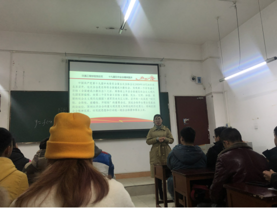 (本网讯 交通工程学院 图/陈怀竹 文/芶继容)为加强学院学生思想建设,推动学生深入学习“中国共产党十九届五中全会精神”,共同营造积极向上的精神风貌,2020年12月3日上午10:00,交通工程学院副院长张文利在第三教学楼109室给学生做十九届五中全会精神专题宣讲,交通183及184班全体同学参加了讲座。