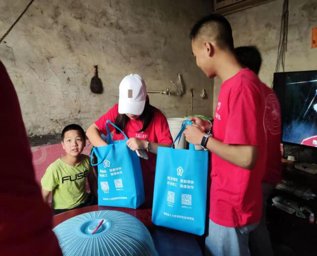 社会实践尾声,队员们经过前期的了解和相处,为部分留守儿童和困境儿童送去学习用品,并鼓励他们好好学习。