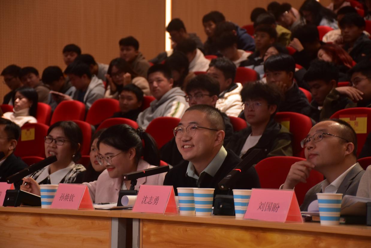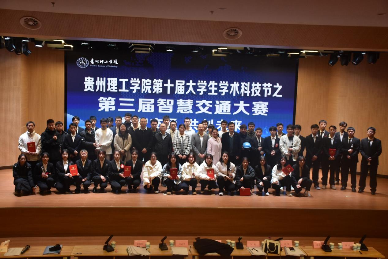 (本网讯 交通工程学院 图文/汪大程)为培养广大学生的科学精神,提升大学生创新能力和逻辑思维能力,2023年11月24日贵州理工学院第三届智慧交通大赛在小礼堂举行。大赛邀请贵州道坦坦科技股份有限公司副总经理、高级工程师孙焕钦、贵州智诚科技有限公司总经理、高级工程师沈志勇、贵阳市交通发展研究中心副主任、高级工程师何莉、贵州省交通规划勘察设计研究院股份有限公司高级工程师刘国盼、贵州理工学院交通工程学院交通工程专业教研室主任正高级工程师高丽5名专家担任评委。党总支书记黄念庆、院长张文利、副院长黄政及交通学院全体教师、350余名学生观看比赛。交通231班黄家乐担任大赛主持人。