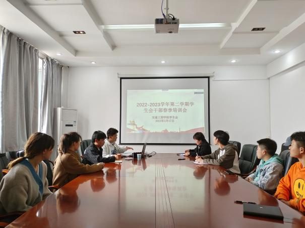 本网讯(交通工程学院 图文/沈冬冬)为进一步提高学生会干部积极为学生服务的使命感和责任心,强化担当作为,更有效地为广大同学服好务,2023年3月17日中午,在团总支书记苏利荣老师的指导下,交通工程学院学生会召开2022-2023学年第二学期学生干部春季培训会,学生会副主席刘浪主持会议,贵安校区部分学生干部同时采用腾讯会议进行。