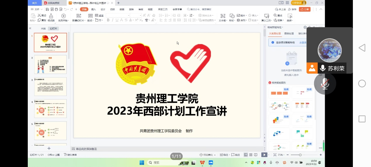 本网讯(交通工程学院 图文/王海林)“到西部去,到基层去,到祖国最需要的地方去。”为弘扬志愿精神,进一步做好大学生志愿服务西部计划工作,帮助我院2019级同学了解西部计划,积极投身西部建设,2023年4月11日晚19点,交通工程学院团总支通过腾讯会议召开西部计划宣讲会。此次宣讲会由交通工程学院团总支书记苏利荣主讲,2019级全体同学参与。