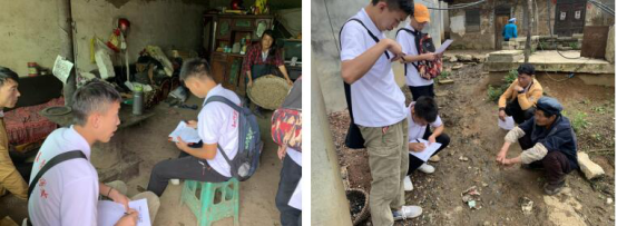 在炎炎的烈日下,志愿服务小队第一组(2人)在第一书记吴玉兴同志和志愿服务队王冬明老师的带领下走访五里村下街组的低保户。在走访过程中了解到,村里的低保户已经在国家补贴下基本解决吃穿住等一些生活问题,生活用水、用电等方面已达到国家标准,基本符合“一达标,两不愁,三保障”的政策要求。小组成员在走访中还发现部分村民环保意识淡薄,在改善卫生条件、增强环保意识上有待提高,小组成员借此时机向村民大力宣讲环境保护的重要性及如何进行环境保护,使村民对环保有了深刻认识。