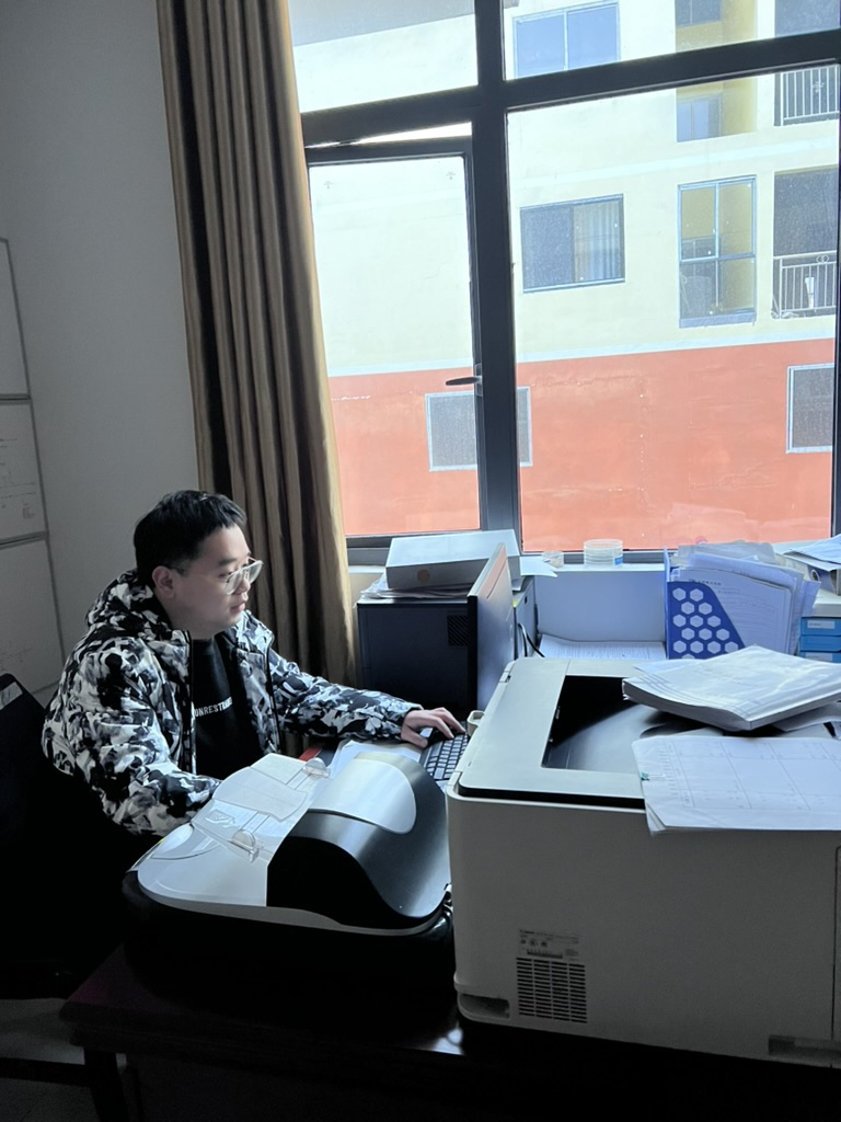 在志愿服务期间,杨佑涛同学主动承担起整理资料的任务。面对堆积如山、分类杂乱的文件,他耐心细致地梳理、分类和归档,建立了更加清晰的资料管理系统,为日常工作的高效开展提供了有力支持