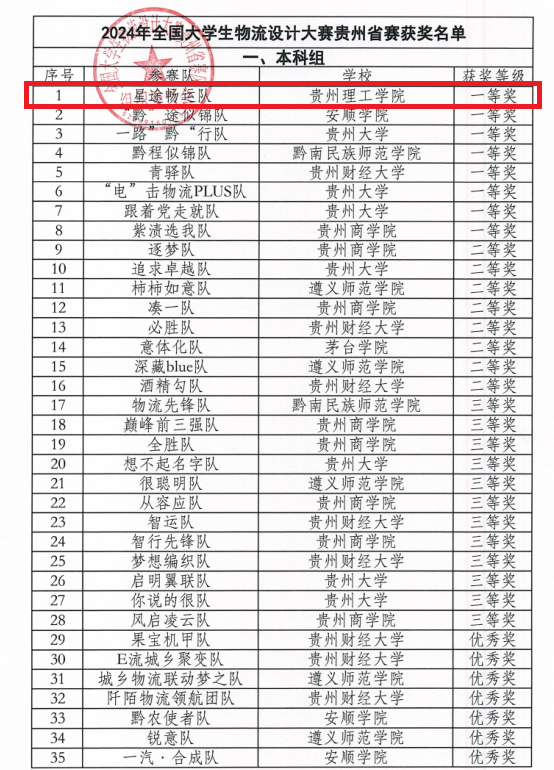 (本网讯 交通工程学院 图文/丰蕊)11月30日,2024年贵州省物流设计大赛在贵州财经大学圆满落下帷幕,本次大赛由贵州省教育厅主办,贵州财经大学承办大赛以“城乡交通运输一体化(农村客货邮融合)发展”为主题,共分为本科、高职高专两个组别。