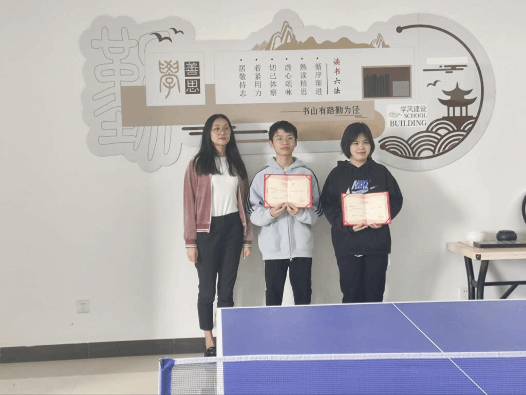 赛场上,选手们挥汗如雨,每一次发球、接球都充满力量与智慧。他们灵活的步伐、精准的击球,赢得了观众们的阵阵喝彩。比赛过程中,选手们不仅展现了个人技术,更体现了友谊第一,比赛第二的精神。在比赛间隙,选手们相互交流经验,分享技巧,增进了彼此之间的友谊。党总支副书记钟银星、学生科科长苏利荣现场为获奖学生颁奖。