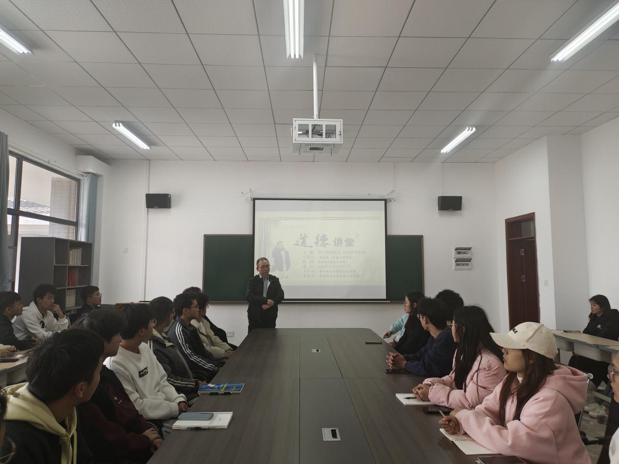 (本网讯 交通工程学院)为加强对入党积极分子的培养和教育,提高其政治素质和理论水平,进一步强化对党的认识和理解,交通工程学院党总支书记黄念庆于2023年11月22日在敏行楼516教室对2023年成为入党积极分子的45名同学开展了道德讲堂教育。