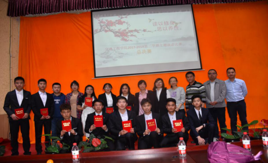 2018年4月18日晚,在学校五周年校庆之际,交通工程学院“读以修身,思以养性”主题演讲比赛在逸夫小报告厅正式开赛。党总支书记李学明及全体辅导员班主任参加并担任评委。