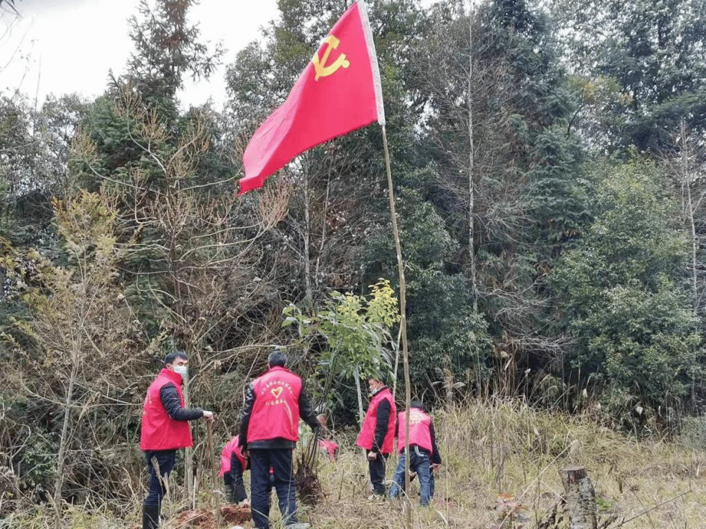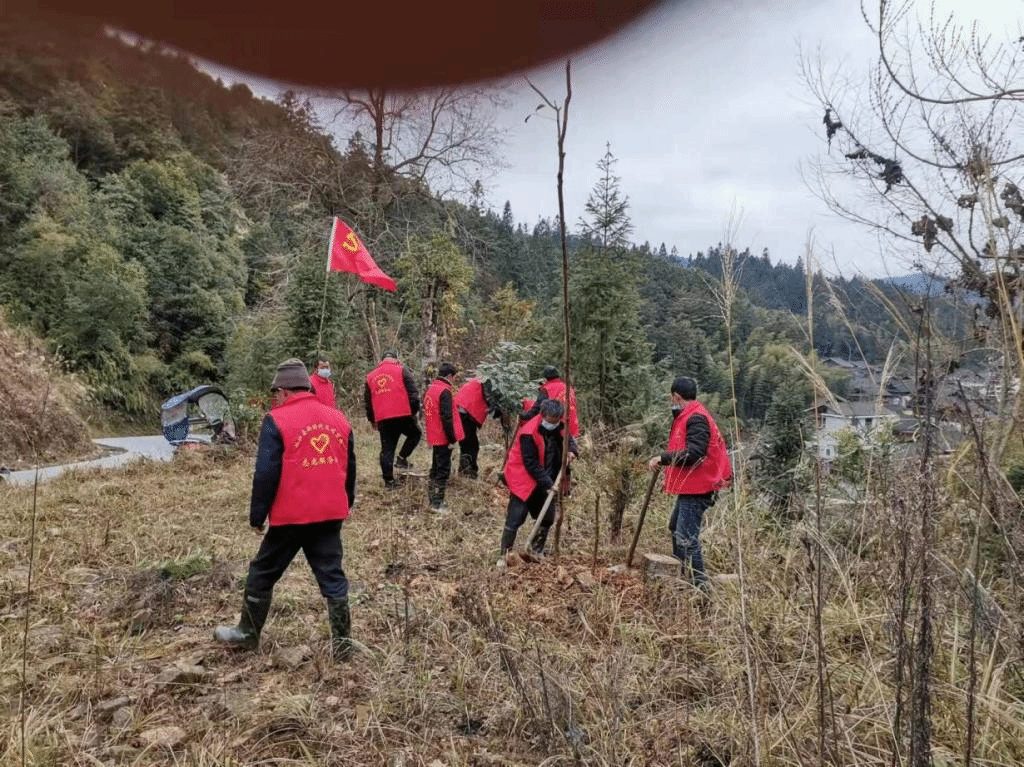 在房屋抗震调查结束之后,2月5日,在村支两委的带领下,组织村里的党员以及预备党员进行义务植树造林。