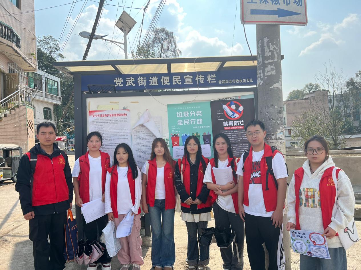 (本网讯 交通工程学院 图文/杨佑涛)为引导人们树立正确的价值观,养成健康的生活方式,增强自我保护意识,自觉树立环保理念,积极参与垃圾分类,2024年11月16日,交通工程学院部分志愿者在党武镇积极开展了一场意义重大的禁毒防艾与垃圾分类宣传志愿服务活动。