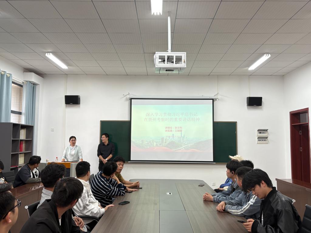 王朋朋老师结合学院实际,鼓励同学们将讲话精神转化为实际行动。他强调,作为新时代的青年学生,要深刻领会习近平总书记对贵州发展的殷切期望,不仅是思想上的领会,更是行动上的落实。努力学习专业知识,提升自身能力。与此同时也需要加强学风建设,为贵州的高质量发展贡献力量。