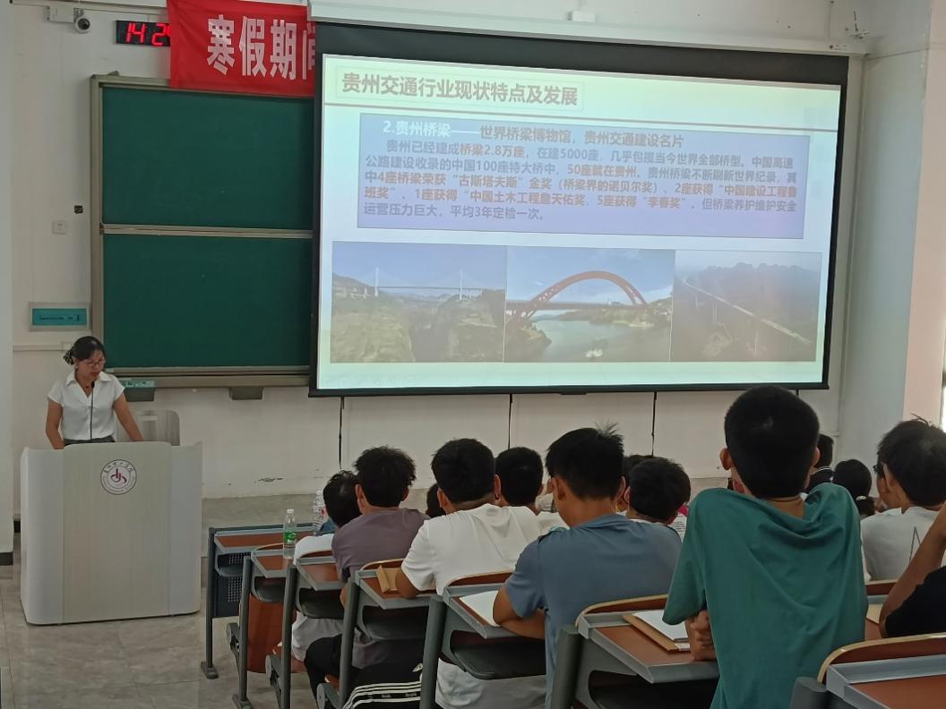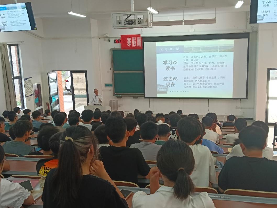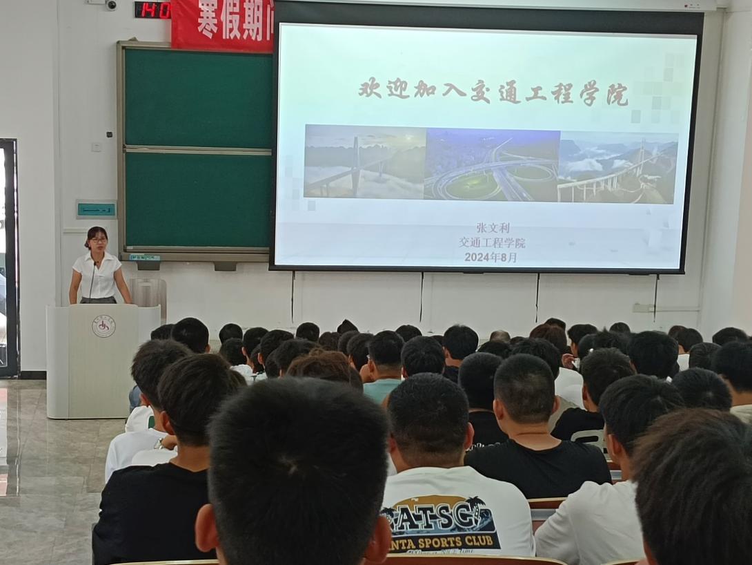 学教育伊始,学院院长张文利致辞,她对新生的到来表示热烈欢迎,并简要介绍了学院的历史沿革、师资力量以及学科建设情况,重点就交通建设发展与学科人才培养方面帮助同学们了解专业。通过生动的讲解,让新生们对学院有了更深入的了解,增强了他们的专业认同感和归属感。张院长希望新生们能够珍惜大学时光,树立远大理想,努力提升专业素养,为将来成为社会栋梁之才打下坚实基础。 随后,学院党总支书记黄念庆以《坚定理想信念,努力成长成才》为题给同学们深入浅出循循善诱讲述如何爱国荣校,追求人生理想和目标。他强调大学不仅是获取知识的殿堂,更是锤炼品格的重要时期。他希望同学们能够珍惜大学时光,努力提高专业水平,明确目标、刻苦钻研、博闻强识,号召大家坚持严格的自我要求和不懈的自我磨砺,成长为理想中的自己。 此外入学教育还特别安排了安全教育环节。由党总支副书记钟银星老师作详细讲解,她从校园安全知识,包括防火防盗、交通安全,网络安全、防溺水,防电信诈骗等方面,以生动的案例和学校真实的数据叮嘱同学们要时刻保持警惕,增强自我保护意识,提高安全防范意识。