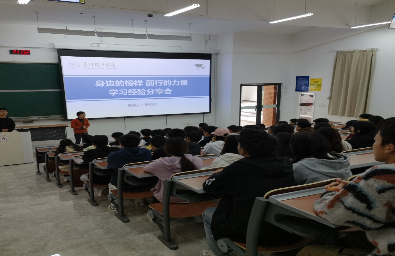 (本网讯 交通工程学院 图文/汪大程)为加强学风建设,引导广大学生向优秀的榜样看齐,科学规划大学生活。2023年11月2日中午14:00点,交通工程学院开展以“身边的榜样,前行的力量”为主题的学习经验分享会,本次分享会由国家奖学金获得者交运202班杨翔宇同学主讲,2022级全体同学参加聆听,苏利荣老师主持。