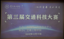 (本网讯 交通工程学院 邱江烨)2019年12月10日晚19点,贵州理工学院第三届交通科技大赛决赛在逸夫小报告厅隆重举行,贵州理工学院团委副书记王凯、交通工程学院领导班子以及全体教师出席了大赛,交通工程学院400余名学生观看了大赛。大赛由交通工程学院学生会学习部部长黄娇主持,贵州省交通职业技术学院分院院长汪迎红、贵州省交通规划勘察设计研究院科技处副主任王维利、贵州省交通科学研究院设计院副院长黄凤苗担任本次大赛评委。