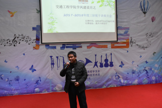 为加强学风建设,提升学生综合素养,2018年11月20日晚19点,交通工程学院学风建设月之演讲比赛在逸夫小报告厅举办。本次演讲比赛主题为:践行核心价值观,我的诚信之行和发现自己的美。李学明书记、陈筠院长、邹俊辉老师、黎安如老师及陈盼老师担任评委,学院全体同学参加。