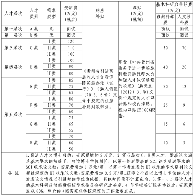 为适应学科建设和师资队伍建设需要,拟引进人才分为“第一层次~第五层次”共五个层次和“A类~H类”共八个等级。(人才层次见附件1《贵州理工学院2019年高层次人才引进办法》)