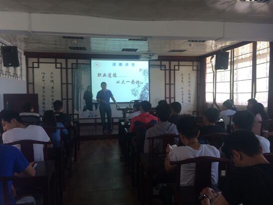 (本网讯 交通工程学院 姜航航)洗涤心灵,感悟道德,进而传播、践行道德,这是“道德讲堂”的根本宗旨。为提高我院大学生的道德素质修养,营造文明,和谐,健康的氛围,2017年5月12日中午13点,交通工程学院党总支书记李学明在图书馆四楼开展了以“职业道德 从大一开始”为主题的道德讲堂主题讲座。学生科苏利荣、交通161班主任邹俊辉及部分学生聆听讲座。