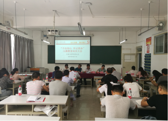 (本网讯 交通工程学院 邹俊辉)2019年9月17日,交通工程学院党总支在三教208教室召开“不忘初心、牢记使命”主题教育启动大会,学院党政领导、全体师生党员及校主题教育第六巡回指导组成员参加会议。
