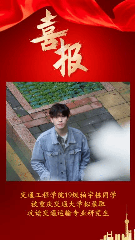 本网讯(交通工程学院 图文/柏宇栋)交通工程学院2023届考研学子捷报传来,在2023年全国硕士研究生招生考试中,交通191班柏宇栋同学拟录取重庆交通大学,特发中国足球彩票:以示祝贺!