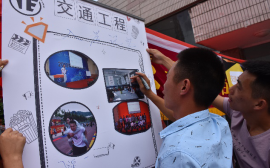 除此之外,我院还为新生们准备了“签名墙”,以此来纪念这意义非凡的一天。骄阳似火,志愿者们早已汗流浃背,但他们依然热情饱满,没有丝毫懈怠。