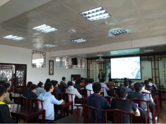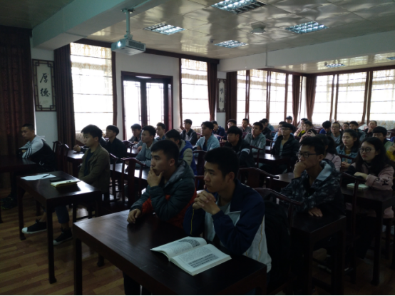 同学们认真听讲,同时积极与李学明老师互动,表达自己对将来职业的规划,有的同学立志考研,有的同学想考公务员,有的同学想进事业单位,也有一些同学表示还未找到自己的大学奋斗目标。