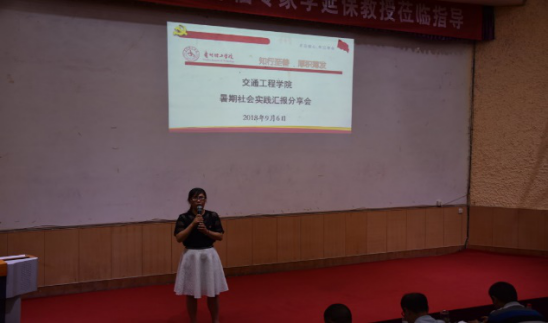 本网讯(交通工程学院 图:冷桂林/文:岳桂菊)2018年9月6日晚上19点,交通工程学院暑期社会实践汇报分享会在逸夫小报告厅隆重举行。出席本次大会的有党总支书记李学明,副院长张文利,邹俊辉老师,甘新立老师,16级辅导员苏利荣,18级辅导员龙琼以及交通学院全体学生。