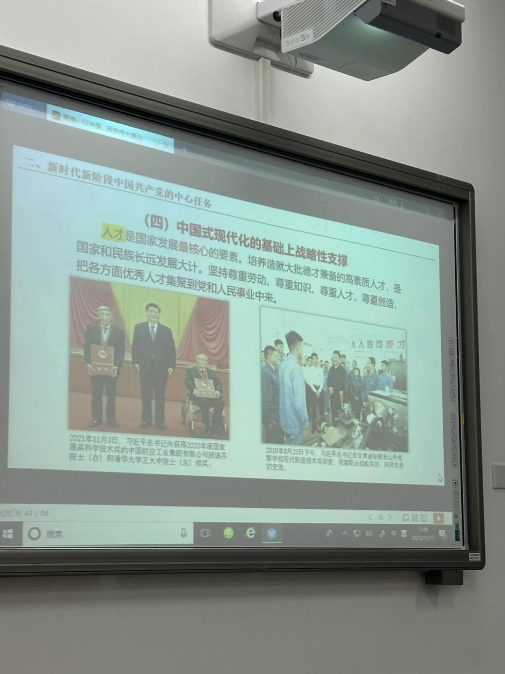 夏雍在宣讲中展示了马克思主义中国化时代化的最新理论成果--习近平新时代中国特色社会主义思想。重点强调了“10个明确”“14个坚持”“13个方面的成就的相互关系”。他结合中国现在的实际情况带领同学们一起了解新时代新阶段中国共产党的中心任务,增强了同学们的新时代担当意识。他鼓励同学们独立自主,努力学习,跟着中国共产党的步伐前进,成为高素质人才,早日实现我国高水平科技自强自立的目标。