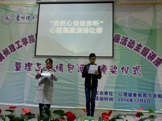 2016年12月12日晚19:00,交通工程学院在逸夫小礼堂举行了“我把心说给你听”大学生心理健康演讲比赛,比赛由162班杨鑫与162班马艺夫担任主持,学党总支书记李学明、院长缪志农、辅导员梁维以及各班主任出席了本次比赛并担任比赛的评委。