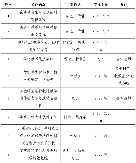 交通工程学院2019-2020学年(2)学期开学工作安排