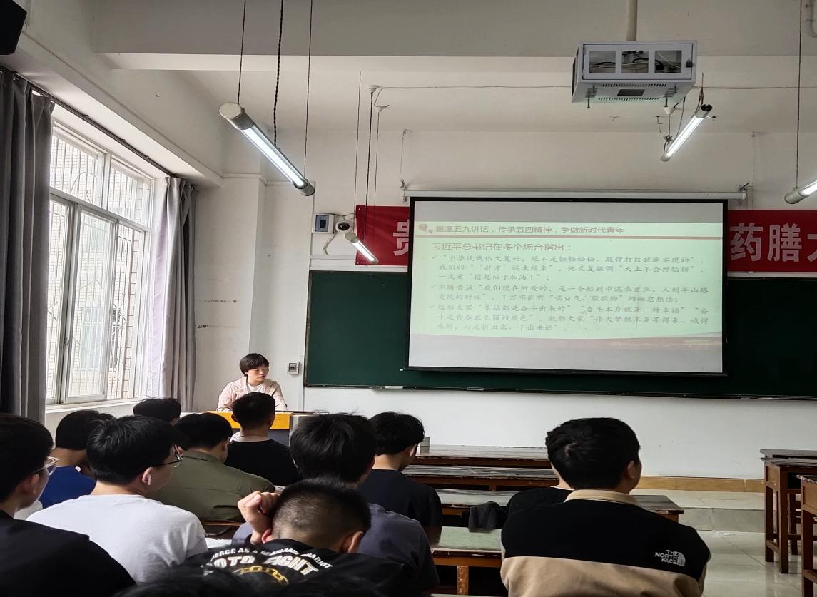 本网讯(交通工程学院 图文/李春艳)传承五四精神,争做时代新青年。2023年4月18日,交通工程学院团总支书记苏利荣在3-105教室开展“重温五九讲话,传承五四精神、争做时代新青年”主题团课,交通221班全体同学参加。