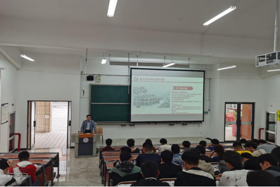 (本网讯 交通工程学院 图/文 冯亚兴)为了扎实开展党史学习教育和“牢记殷切嘱托、忠诚干净担当、喜迎建党百年”的专题教育活动,号召大学生新青年铭记革命历史,将革命精神融入学习与生活中去,2021年5月29日上午,交通工程学院副院长黄政为交运201、202班全体同学开展以“弘扬遵义会议精神,争做有为新青年”的主题讲座。
