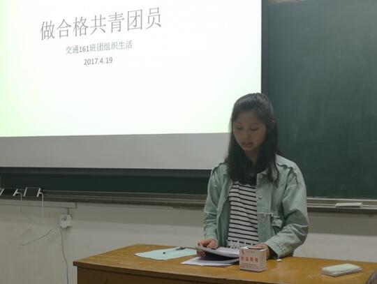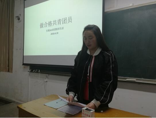 何瑍同学第一个做演讲,她演讲的内容主要为做一名合格的共青团员就必须在学习、劳动,工作及其其他社会活动中起模范作用。团员要用正确的、先进的政治信念作指引,很好地发挥个人的奉献精神、体现出个人的人生价值, 为他人、集体、国家多做贡献。青年团员要有全面的知识水平、综合素质和工作技能作为继续发展的根本。我们不仅要乐于助人、为人诚恳,而且要有为他人奉献的精神;我们不仅要乐于学习、锐意进取,而且要有“活到老学到老的精神”;我们不仅要不断完善、提高自己,而且要具有较强的开拓、创新能力。青年团员应该做青年人的模范。共青团员是青年人中的先进分子,这“先进”二字要体现在方方面面。不仅要宣传、组织、联系广大青年群众,而且要通过工作、生活等把共青团的工作、任务、精神向青年人传达,让青年群众了解掌握。真正做到在工作、学习、生活中保持先进性