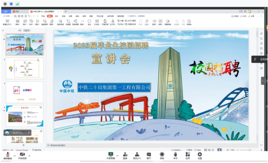 本网讯(交通工程学院 图/文 余何彪)为进一步提高就业服务水平,为用人单位和我院毕业生搭建交流平台。11月2日14点,学院通过腾讯会议举办了中铁二十局集团第一工程有限公司交通工程学院2023届毕业生线上专场招聘会。中铁二十局集团第一工程有限公司,是国资委下属“世界500强企业”中国铁建股份有限公司的全资三级子公司。目前拥有公路工程总承包特级资质,市政公用工程、建筑工程等总承包壹级资质,铁路工程总承包贰级资质;公路路基、公路路面、桥梁工程、隧道工程、地基基础工程等5项专业承包壹级资质。